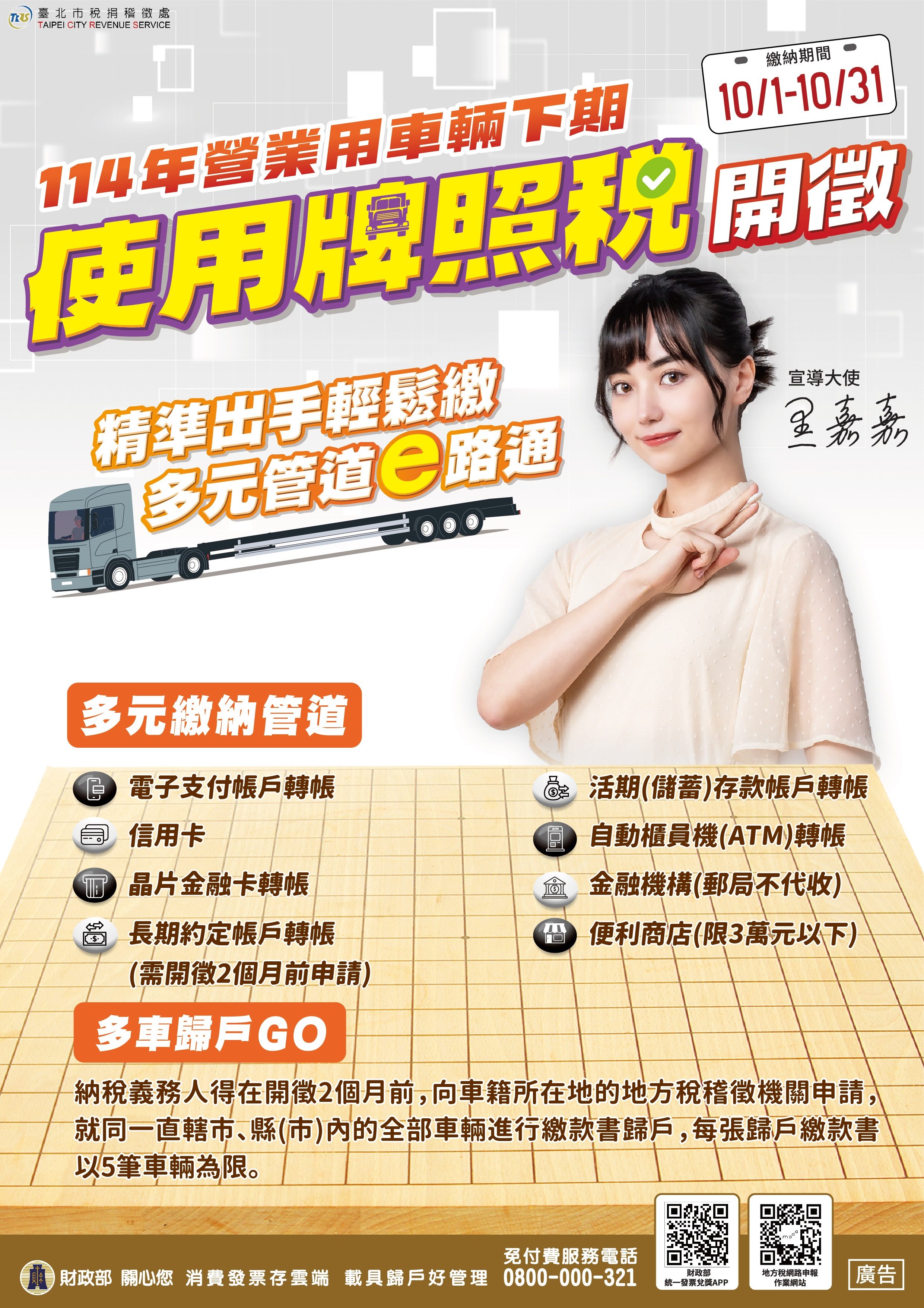 萬華稅捐處-114年營業用車輛下期使用牌照稅開徵