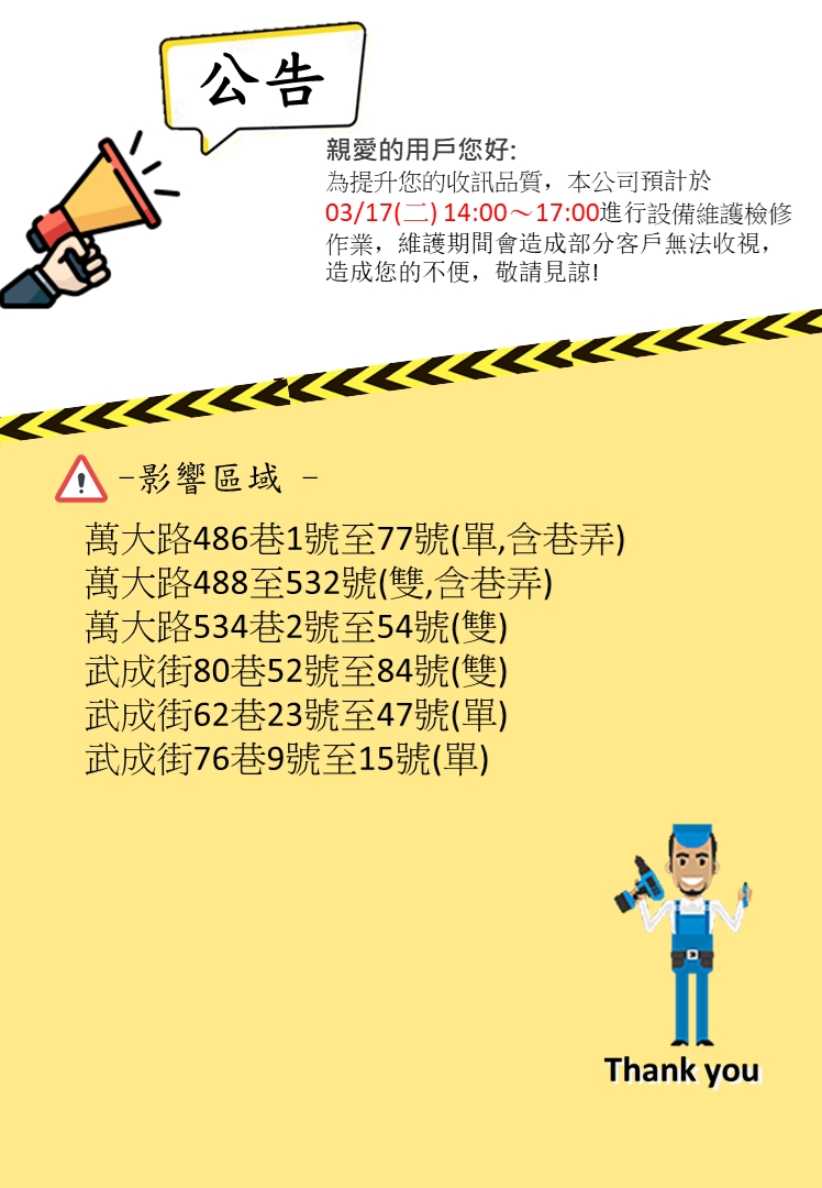 03/17 設備更新維護通知!!
